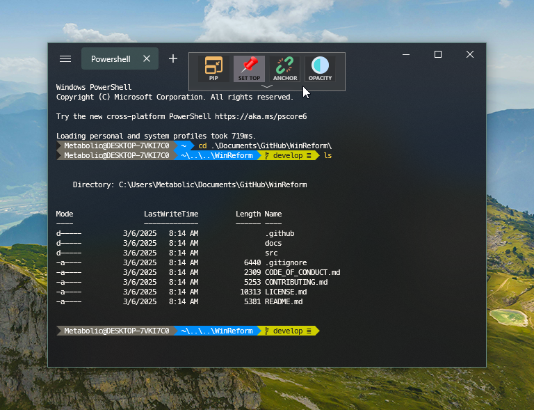 WindowTop - is a powerful Windows window manager and productivity tool that lets you keep any window always on top, create floating Picture-in-Picture (PiP) windows, adjust window opacity and transparency, and easily manage multiple windows with Anchors.